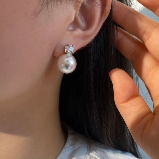 White Round Swarovski Pearl Stud Earrings