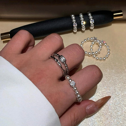 Square Rhinestone Swarovski Pearl Stretch Ring